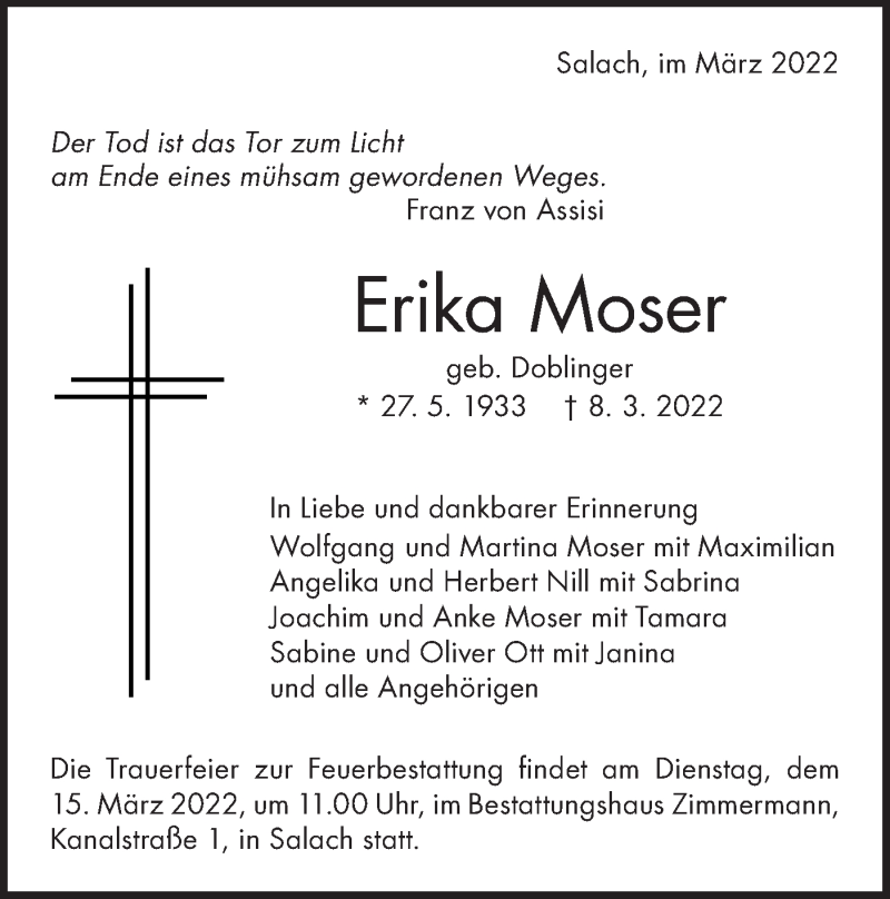 Hier finden Sie alle Traueranzeigen aus der Zeitung, die bisher für Erika Moser erschienen sind. Weitere Traueranzeigen, die in der Zeitung erscheinen, werden hier ebenfalls aufgelistet