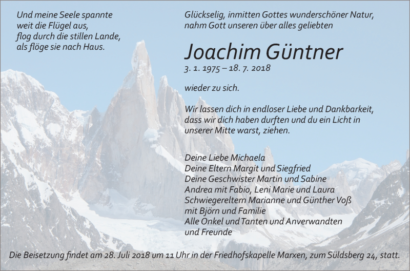 Hier finden Sie alle Traueranzeigen aus der Zeitung, die bisher für Joachim Güntner erschienen sind. Weitere Traueranzeigen, die in der Zeitung erscheinen, werden hier ebenfalls aufgelistet