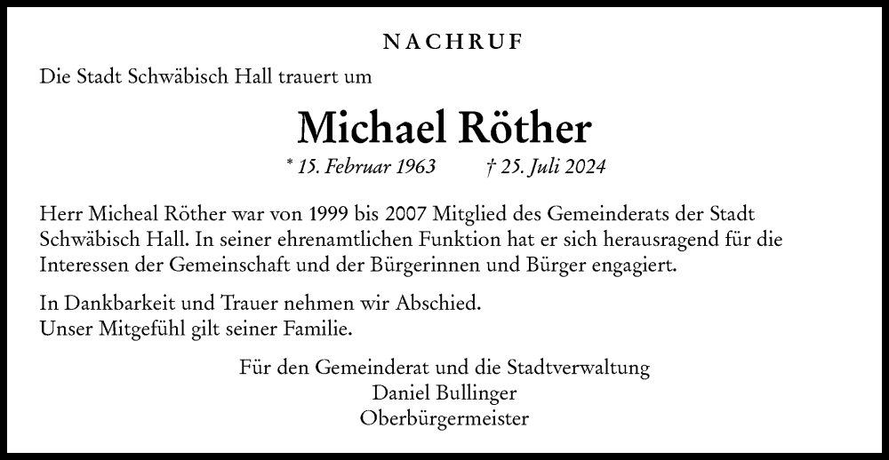 Hier finden Sie alle Traueranzeigen aus der Zeitung, die bisher für Michael Röther erschienen sind. Weitere Traueranzeigen, die in der Zeitung erscheinen, werden hier ebenfalls aufgelistet