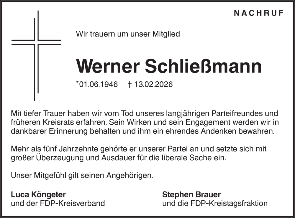 Hier finden Sie alle Traueranzeigen aus der Zeitung, die bisher für Werner Schließmann erschienen sind. Weitere Traueranzeigen, die in der Zeitung erscheinen, werden hier ebenfalls aufgelistet